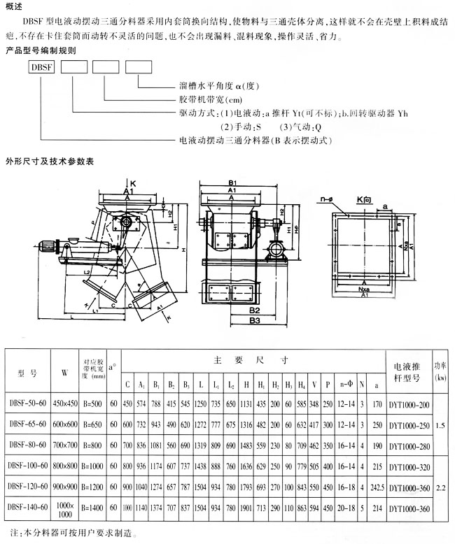 DBSF型電液動擺動三通分料器